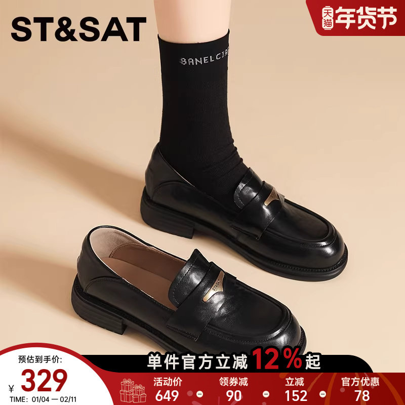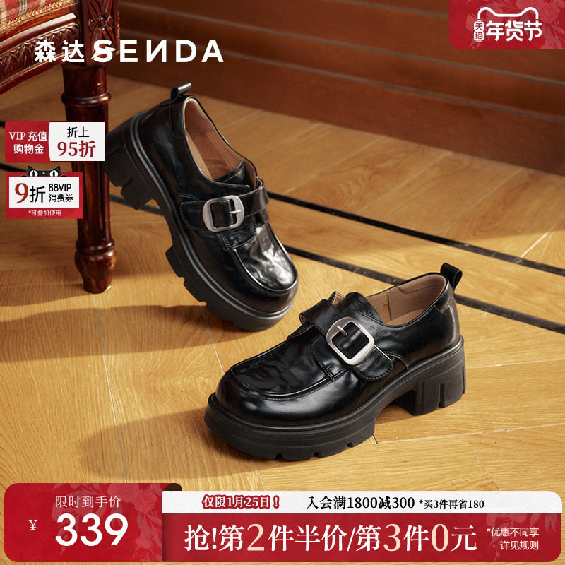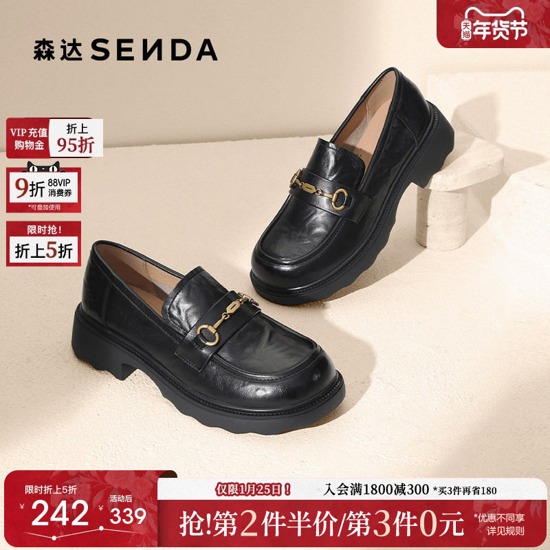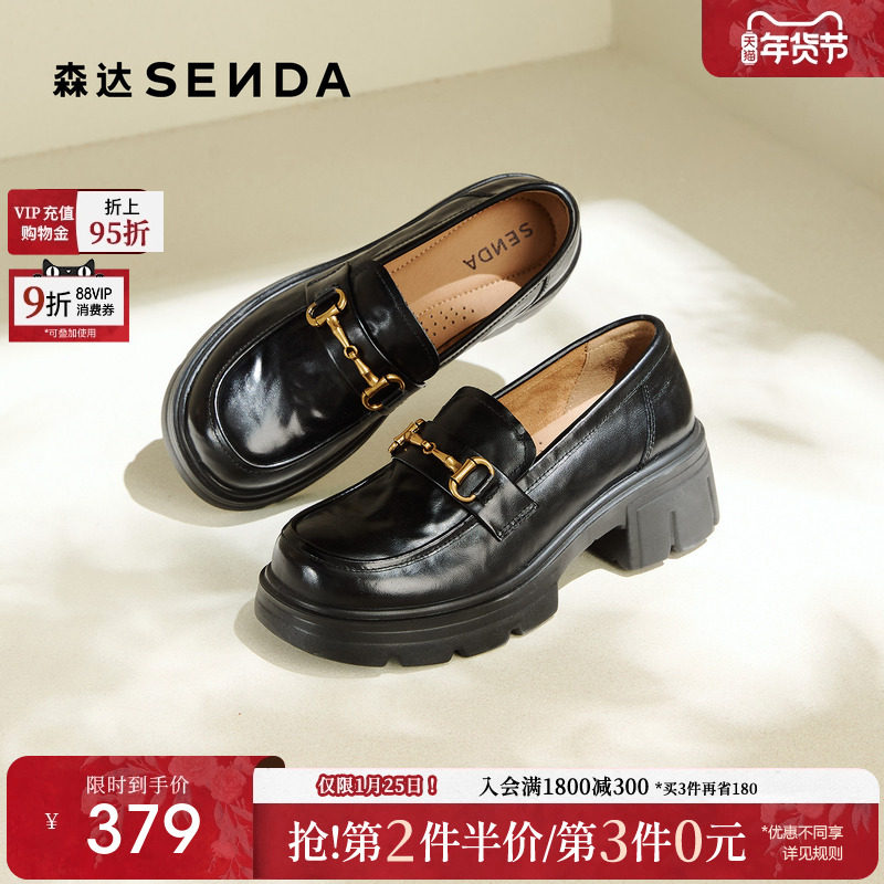森达厚底乐福鞋女鞋26春新款商场同款英伦风通勤黑色单鞋女XWA01