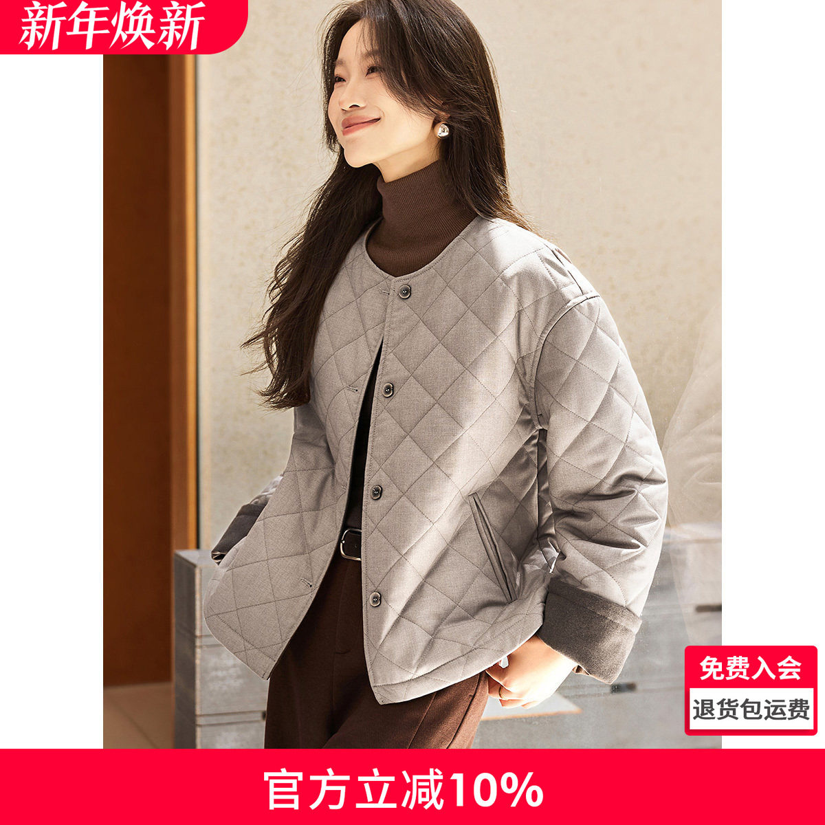 简约纯色宽松廓形茧型圆领保暖外套25冬季新款长袖女棉衣棉服M586