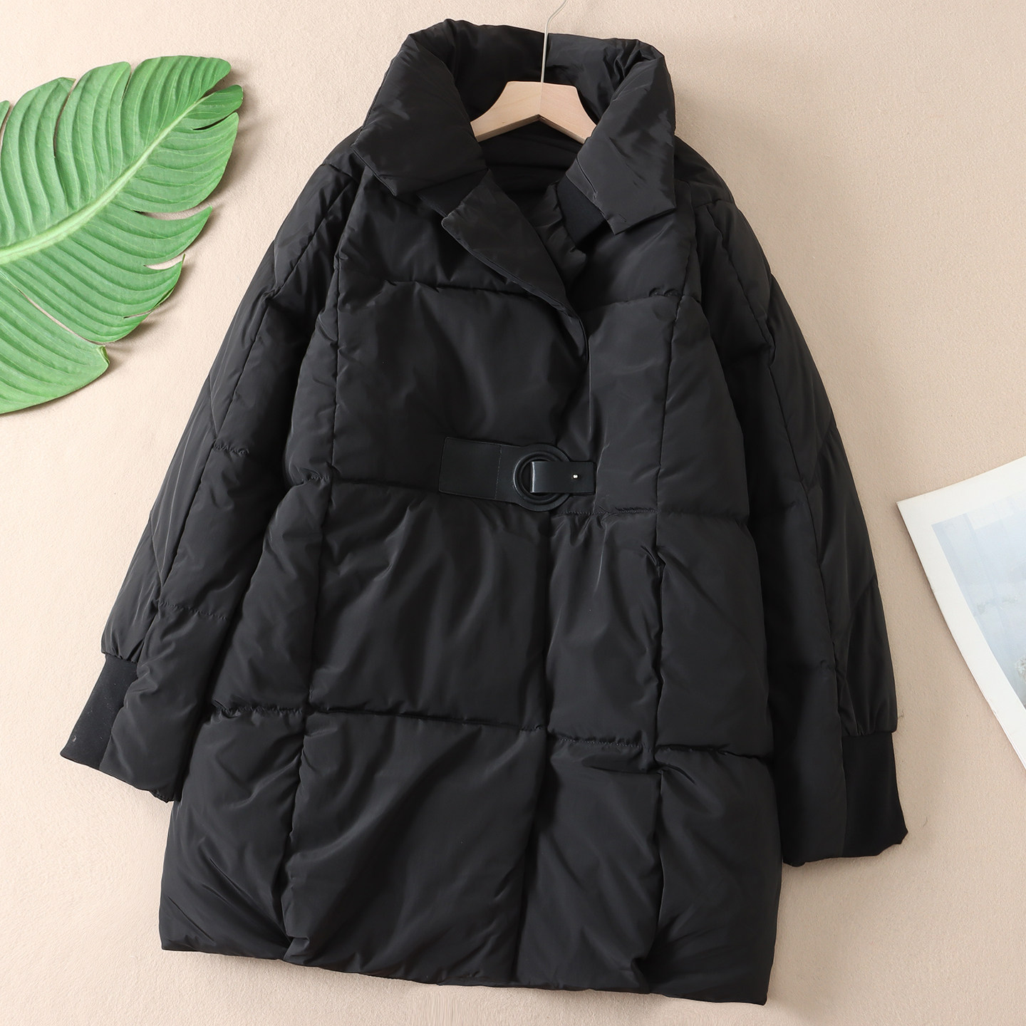 韩版翻领洋气中长款棉服女冬季保暖显瘦加厚茧型棉衣外套W2228