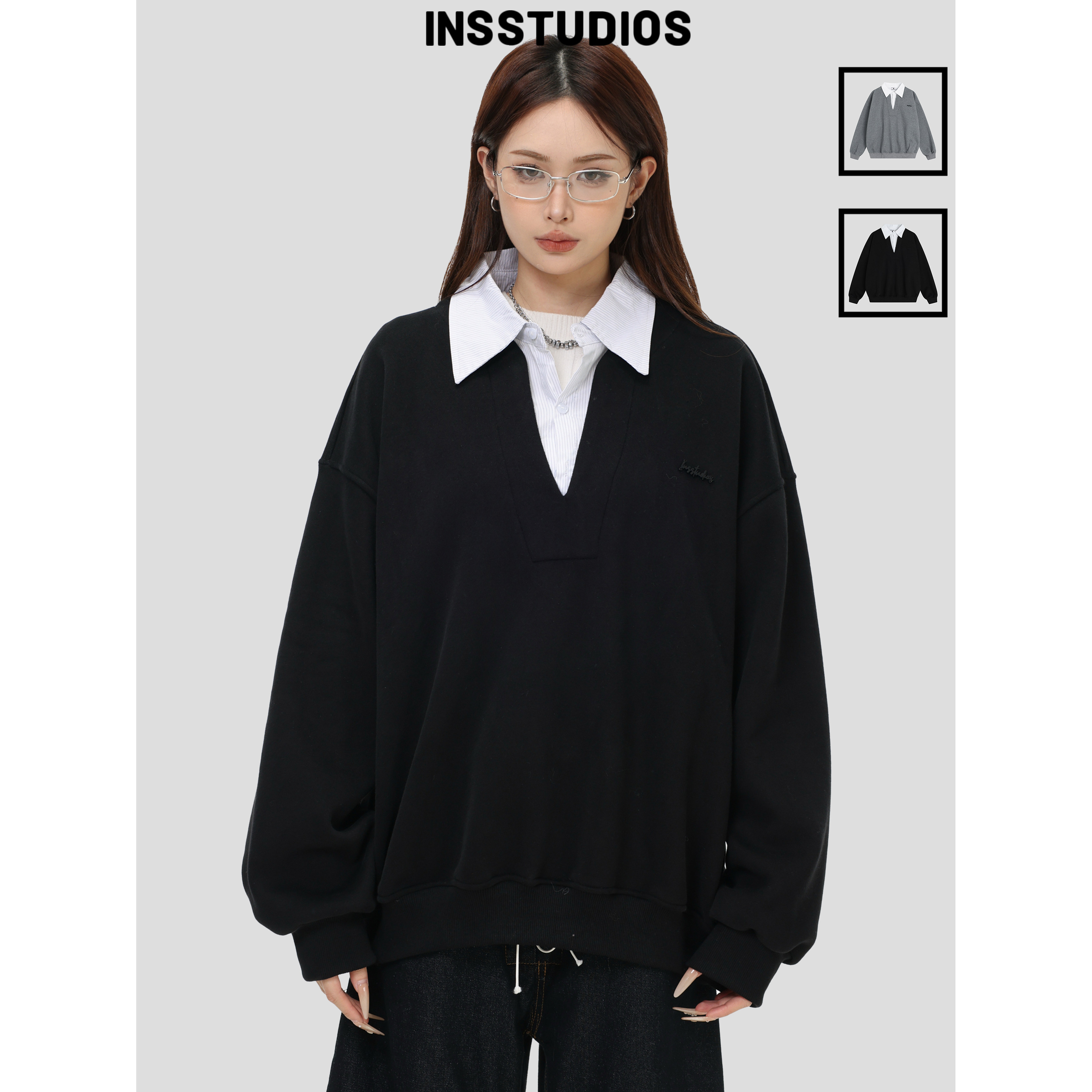 - 黑色连帽卫衣女加绒宽松bf 韩版