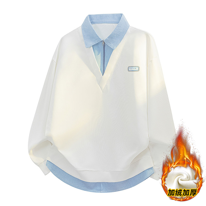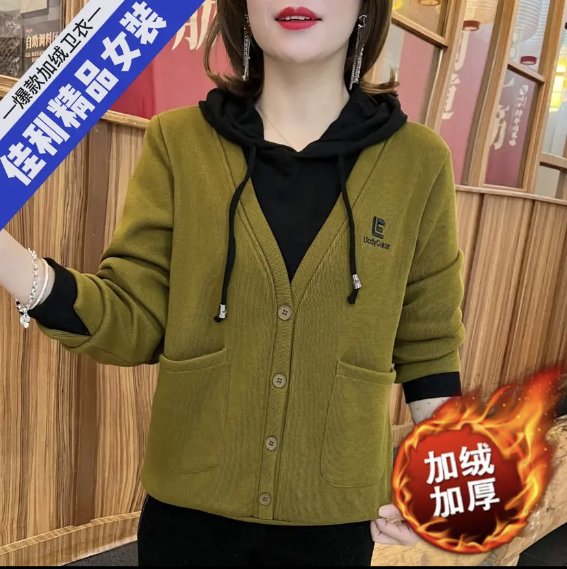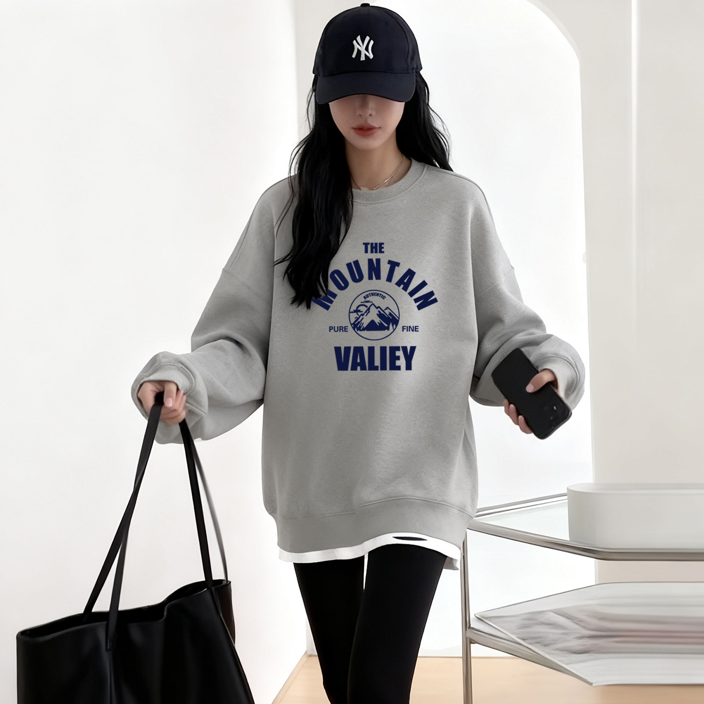 - 套头连帽宽松纯色长袖卫衣绒衫