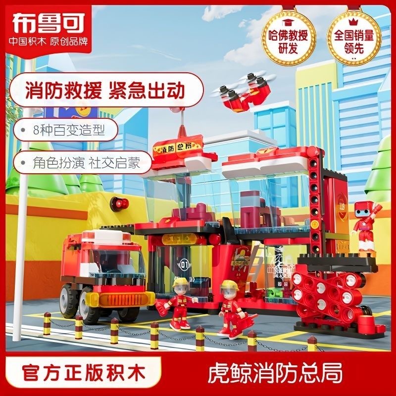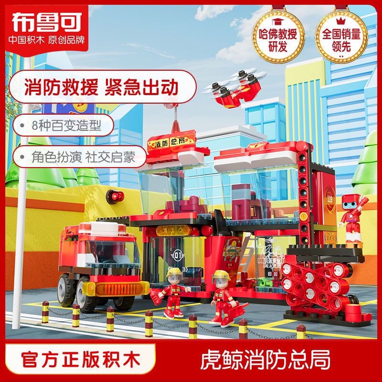 布鲁可小队虎鲸消防总局儿童益智拼装玩具布鲁克拼插积木男孩女孩