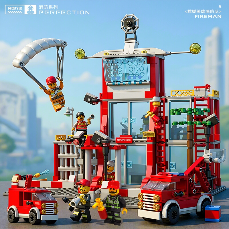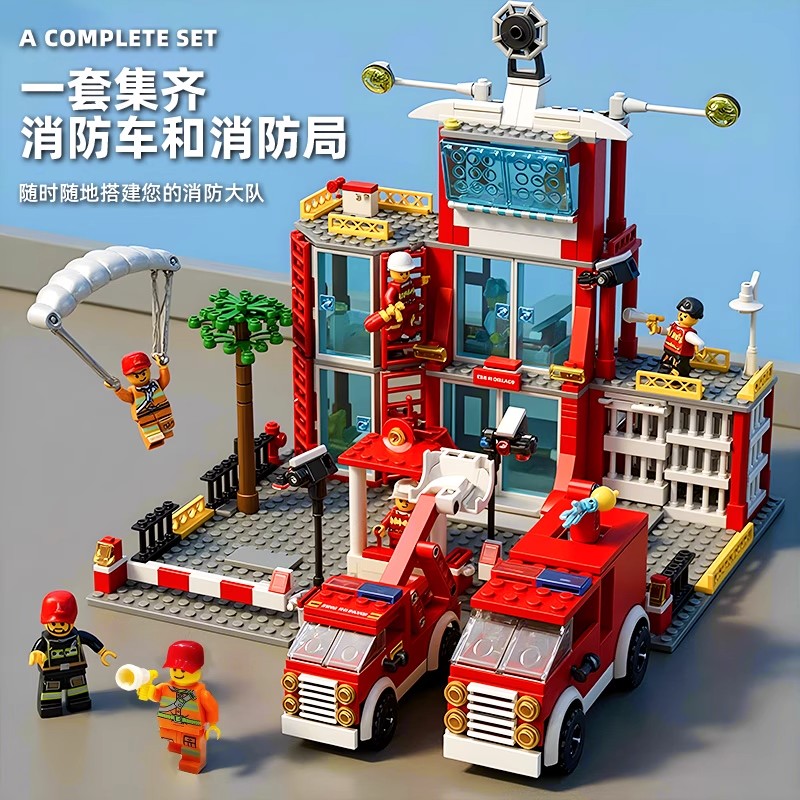 消防总局哲高中国积木玩具过家家场景救火援先锋益智拼装基地合体