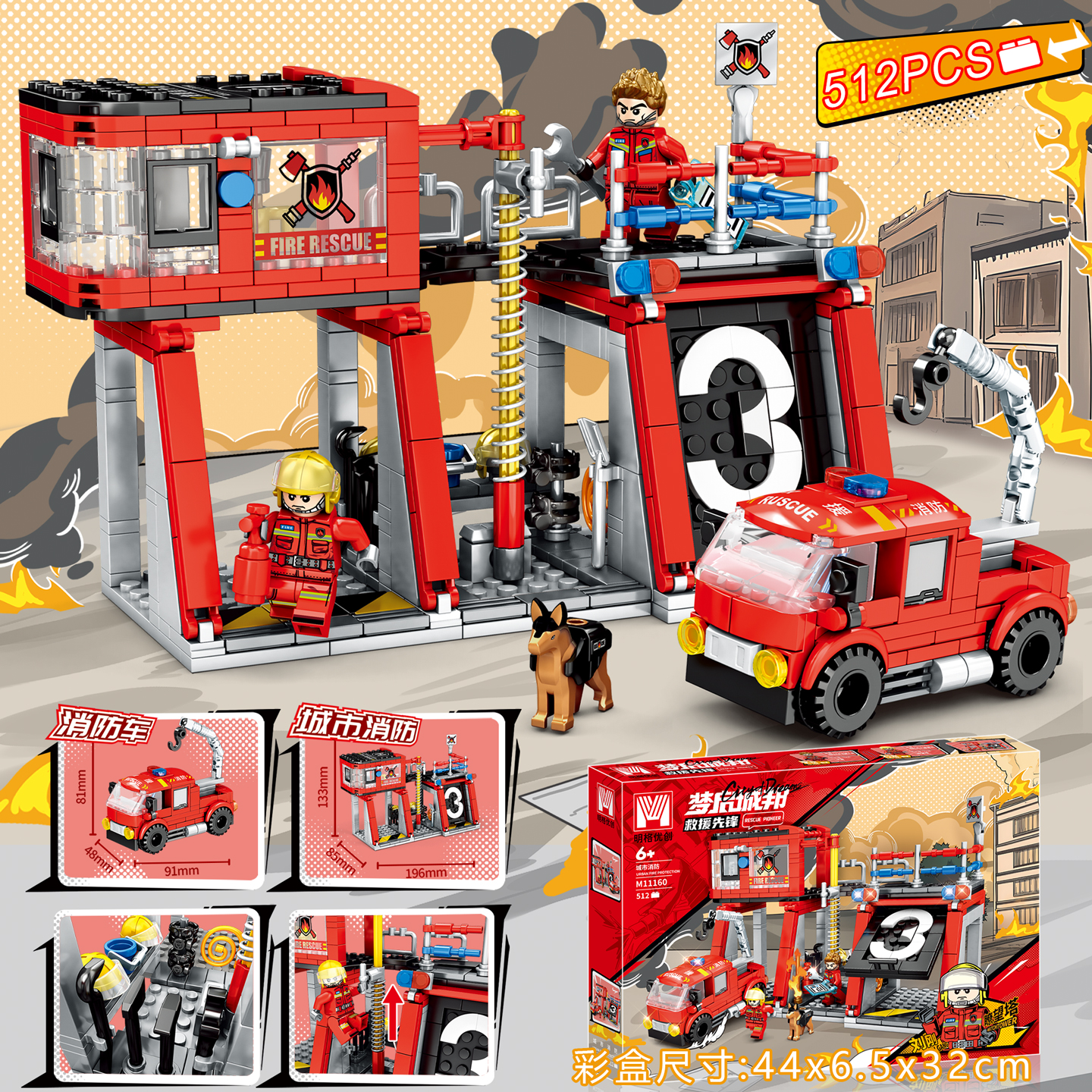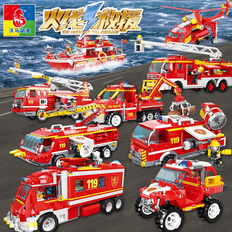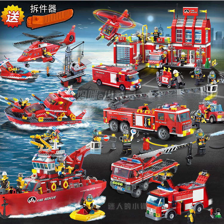 积木玩具城市消防总局消防车船警察局拼图男孩拼装益智力儿童礼物