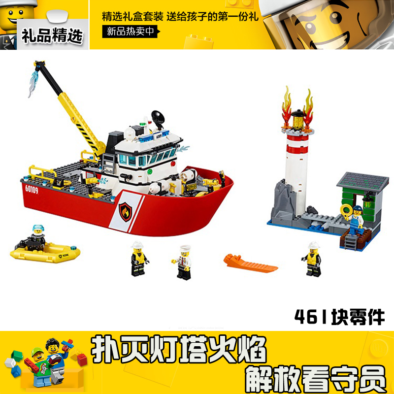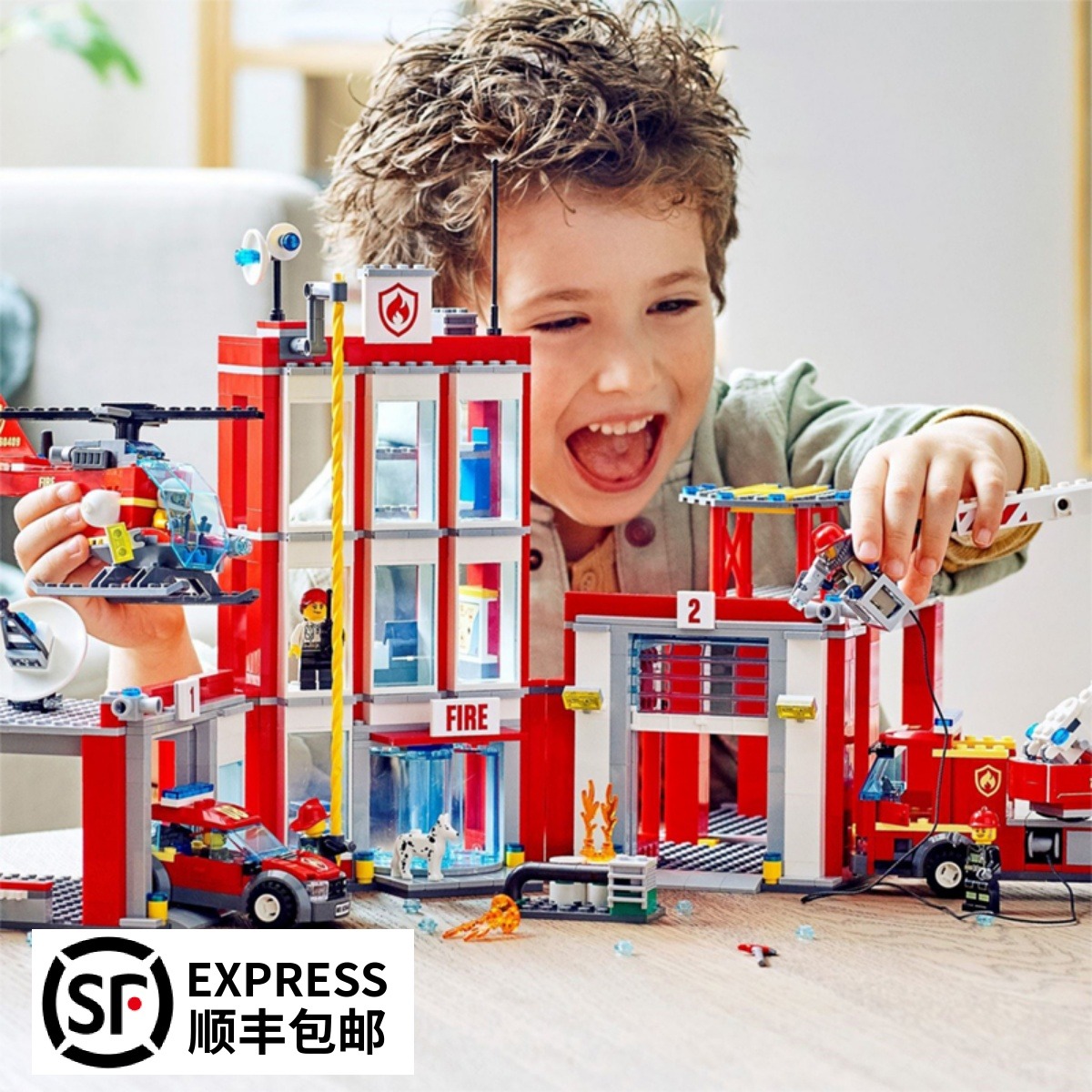 适用于乐高积木60110城市警察消防总局消防车消防船拼装玩具
