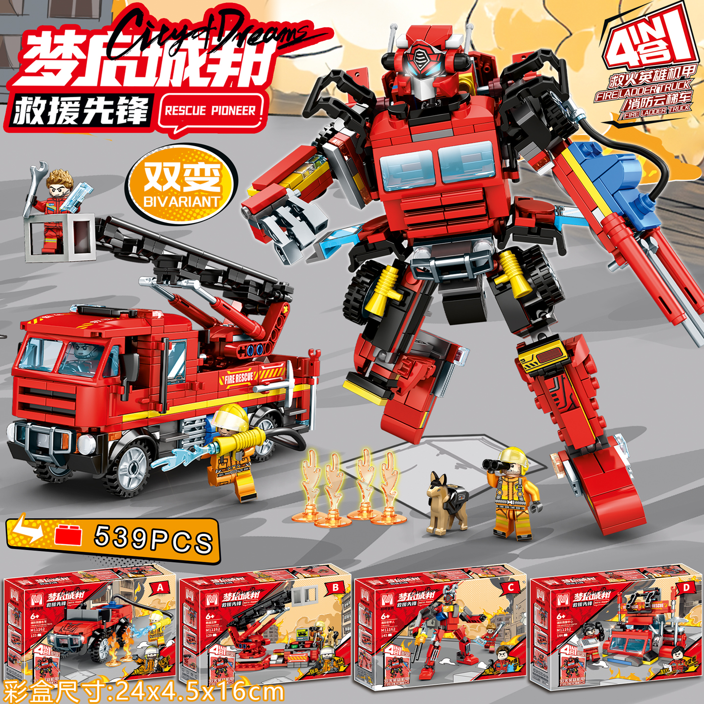百变布鲁可虎鲸消防总局警车直升机拼插组装救护车吊车 玩具积木