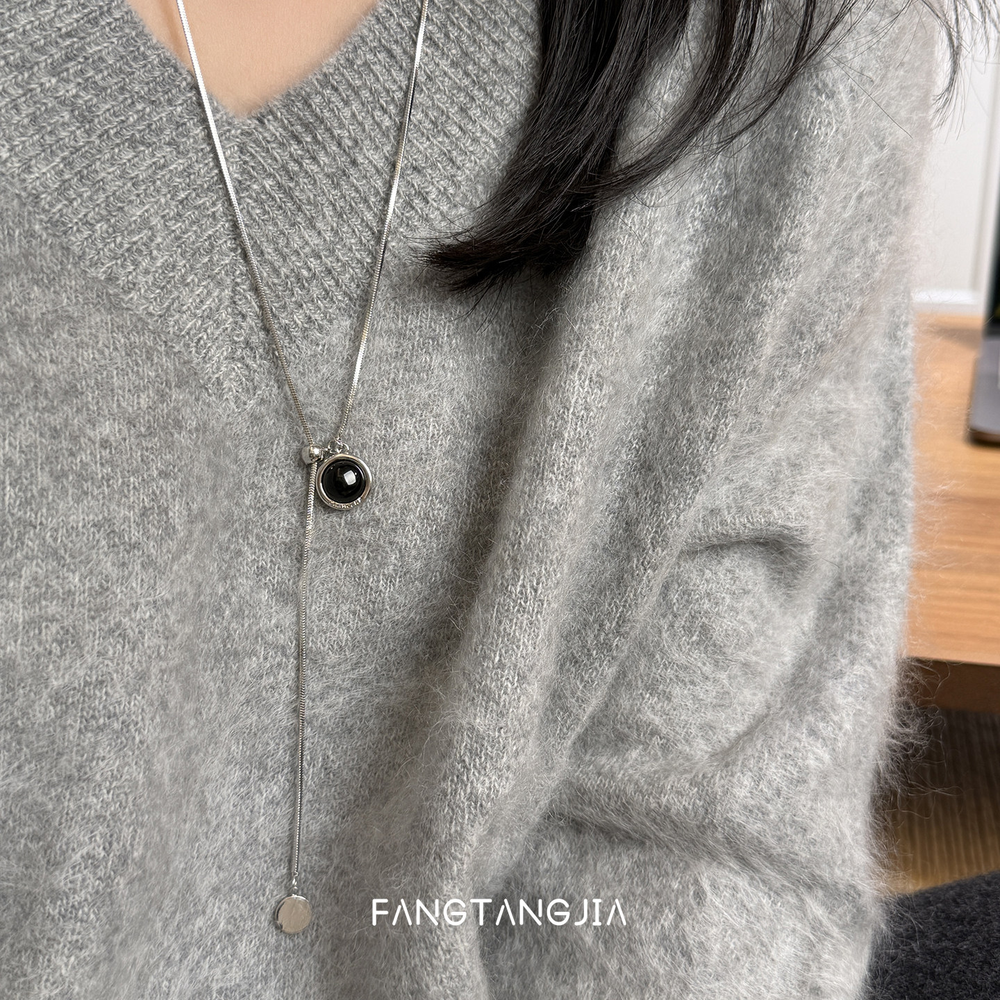 方糖家 双面戴黑玛瑙贝母秋冬复古蛇骨抽拉毛衣项链2025新款高档