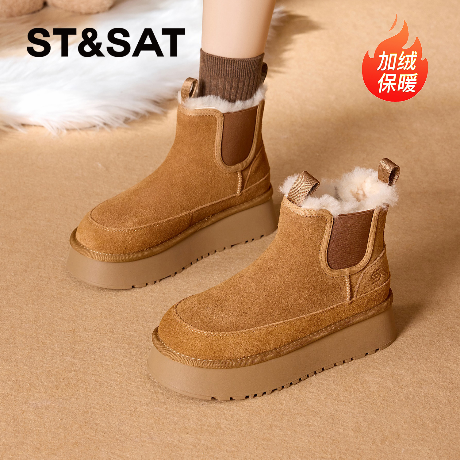 星期六加绒加厚雪地靴女款2025新款冬季厚底短靴子女皮毛一体棉鞋