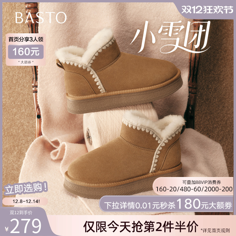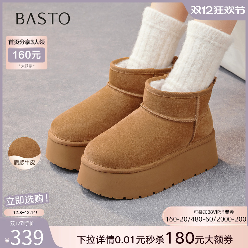 君妍同款百丽小暖炉2代厚底雪地靴女棉鞋加绒保暖短靴D1K2DDD4预