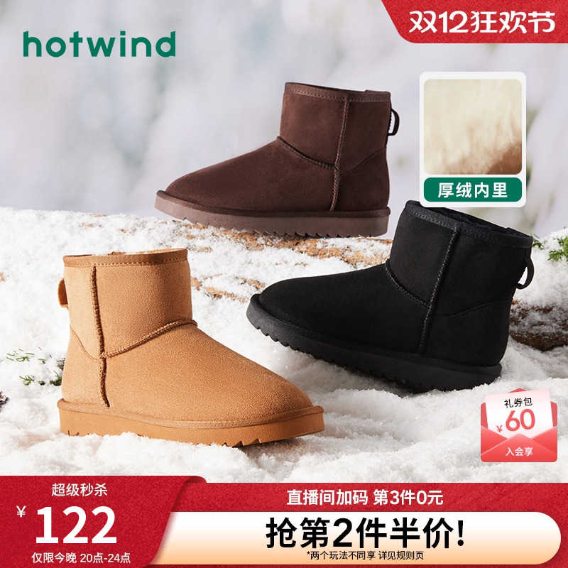 热风厚底雪地靴女2025年冬季新款加绒加厚短靴保暖短筒棉鞋毛毛鞋