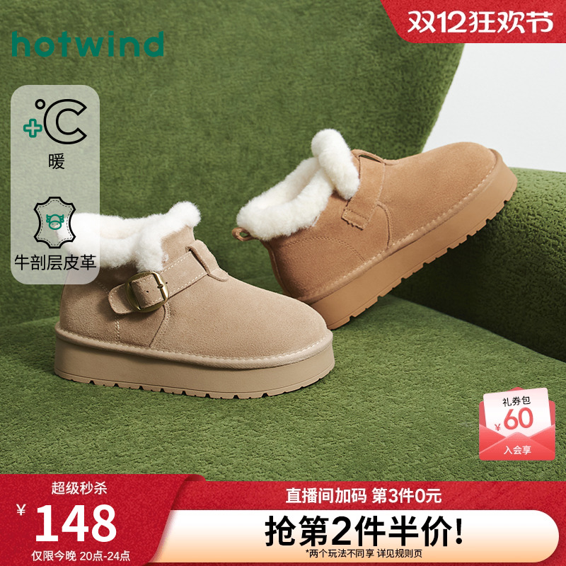 【小雪团】百思图25冬新款加绒勃肯鞋雪地靴毛毛鞋保暖女棉鞋短靴