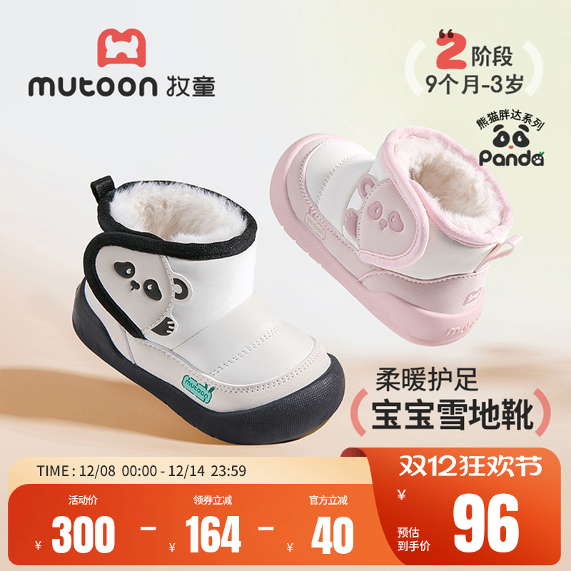 牧童宝宝雪地靴冬季女童小熊猫棉靴男童加绒加厚保暖软底大棉短靴