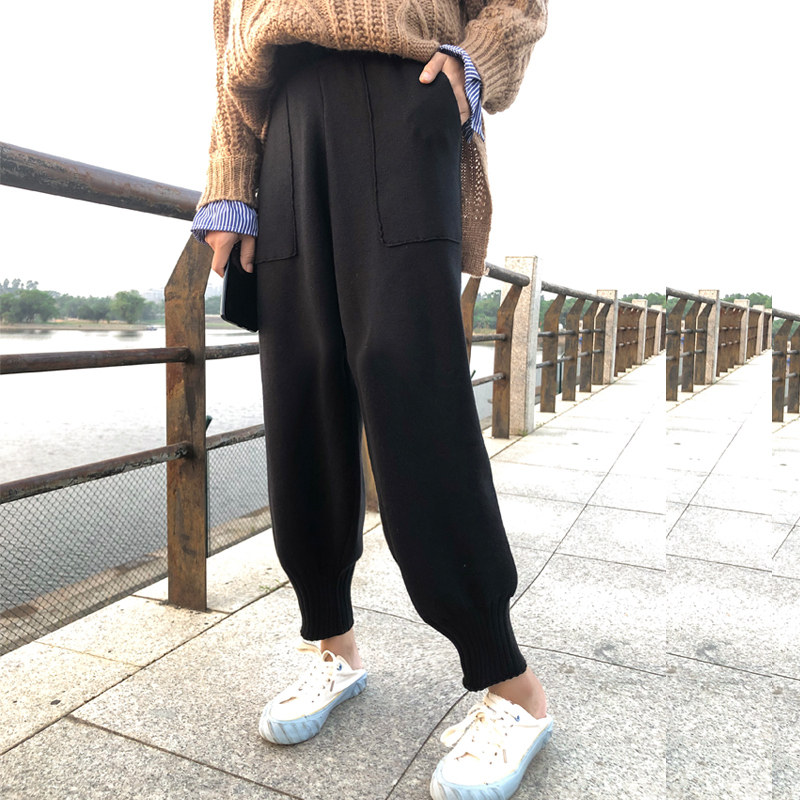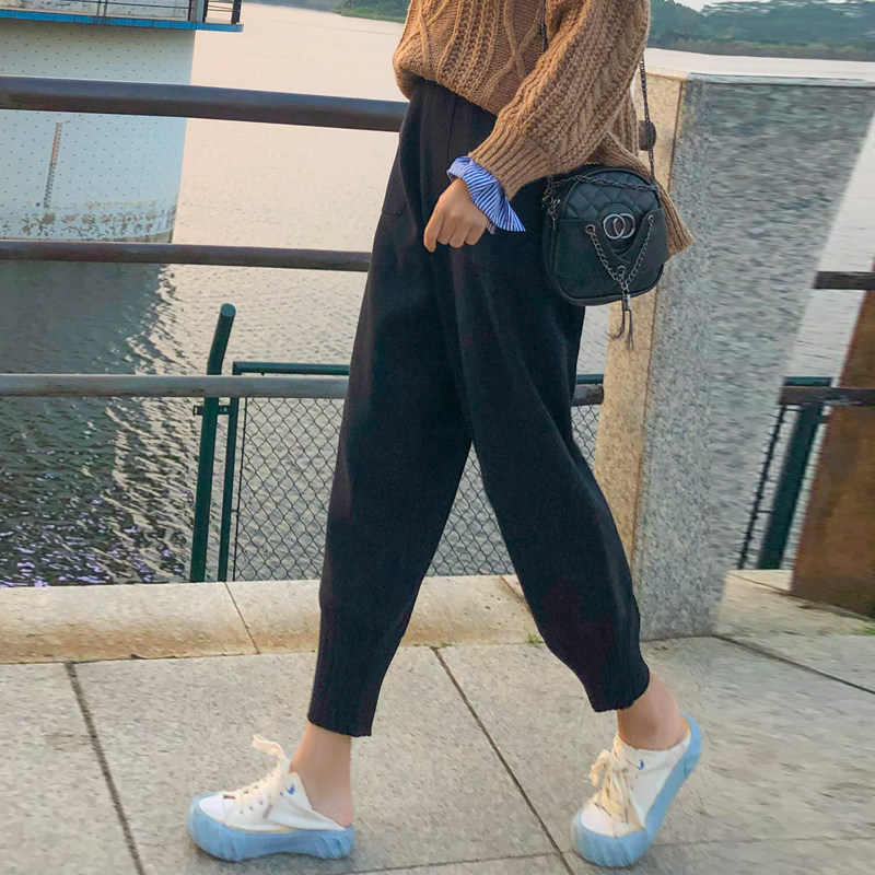 秋冬新款针织哈伦裤女宽松休闲九分小脚裤加厚毛线萝卜裤束脚裤子