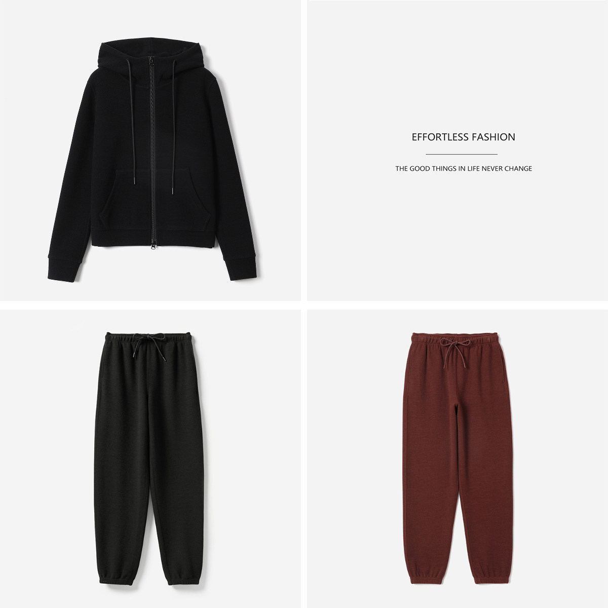 *WKZ06136 茉莉雅集 自在松弛肌理针织羊毛棉哈伦裤拉链卫衣外套