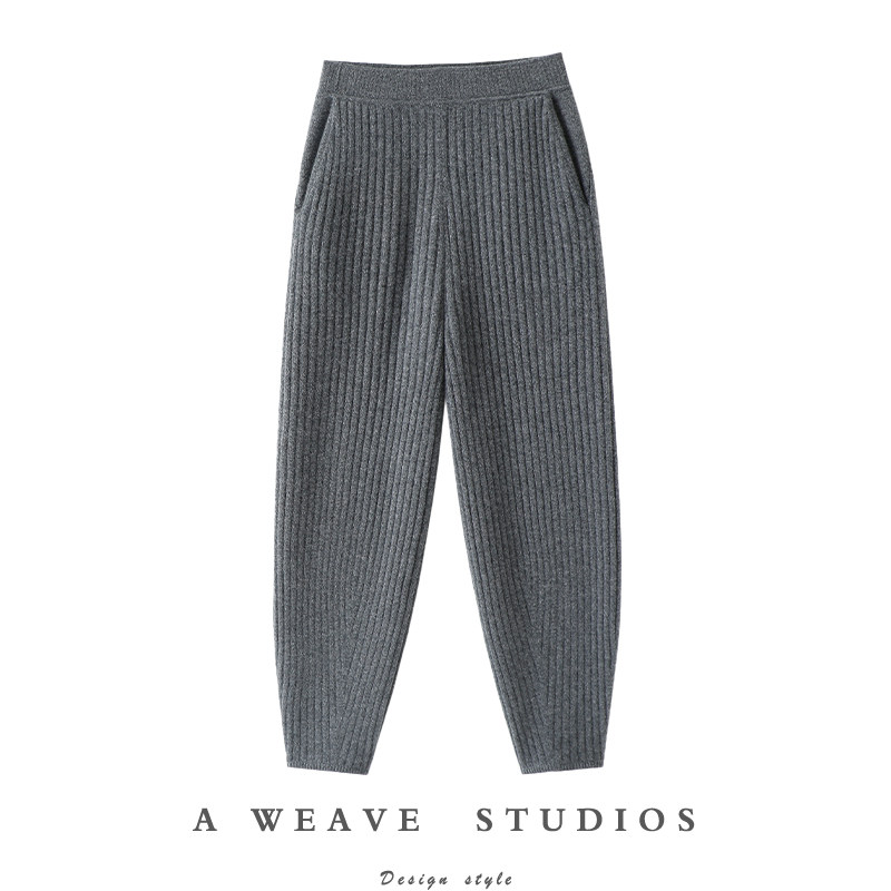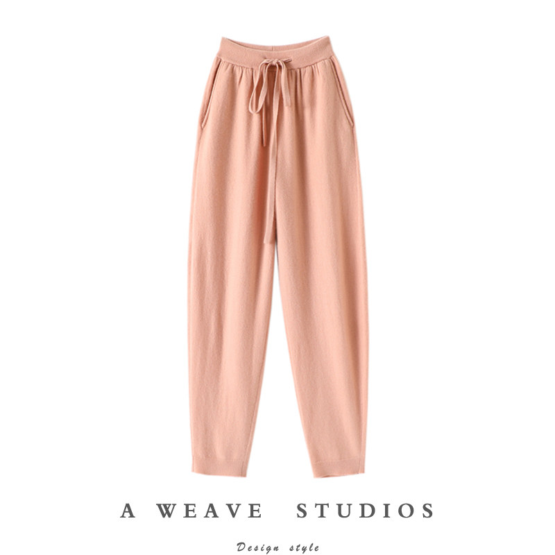 好货丝羊绒毛线针织裤女高腰束脚哈伦裤冬季百搭显瘦长裤休闲裤新