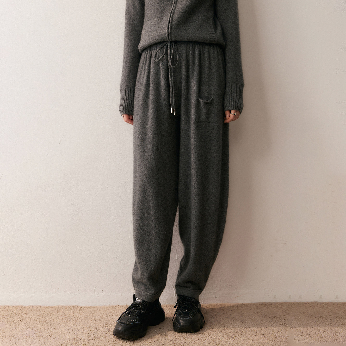 慵懒松弛感山羊绒针织哈伦裤女秋冬高腰宽松束脚休闲裤羊毛阔腿裤