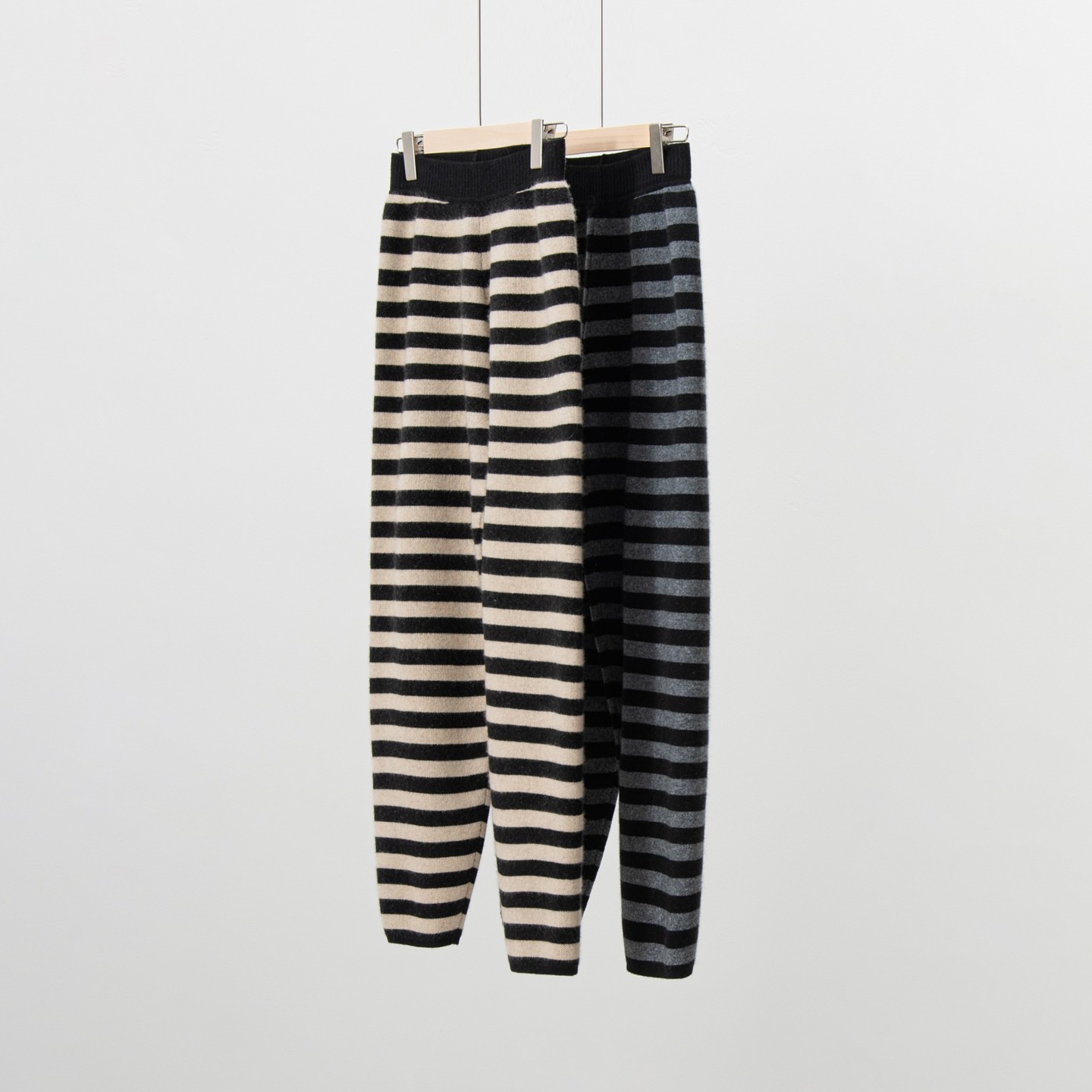 条纹羊绒裤女秋冬季高腰显瘦宽松哈伦裤百搭休闲裤羊毛针织萝卜裤