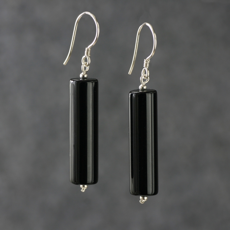 素元黑色纯银耳环圆柱形玛瑙简洁百搭几何形港风特色手工耳坠饰品