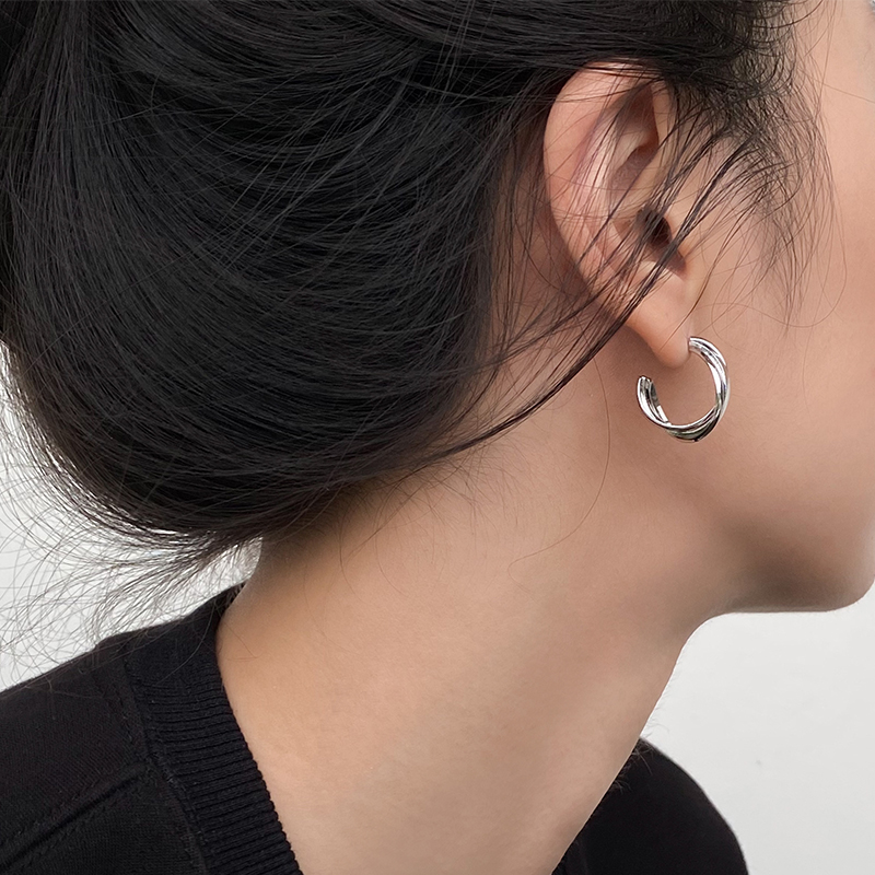 DOUDOUSTORE925银针几何简洁c形耳圈耳环女质感扭曲麻花耳钉耳饰