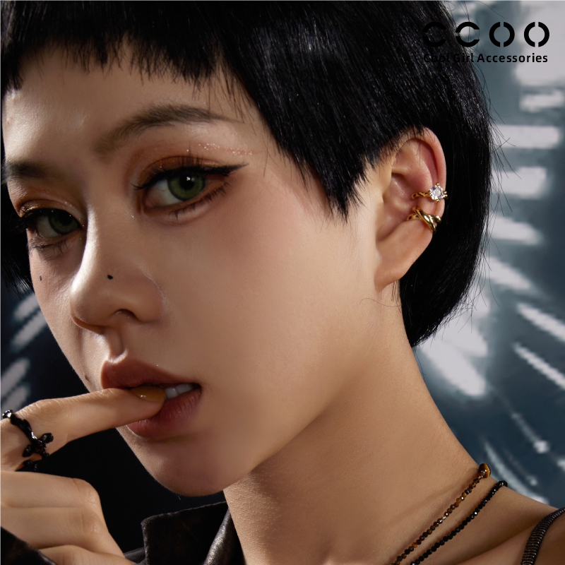 CC&OO设计师简洁百搭耳扣单钻耳夹女无耳洞耳骨夹925纯银耳环耳饰
