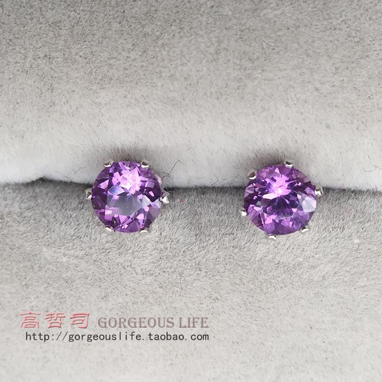 5毫米 天然紫水晶 S925纯银镀白金 简洁6爪镶嵌耳钉 耳环