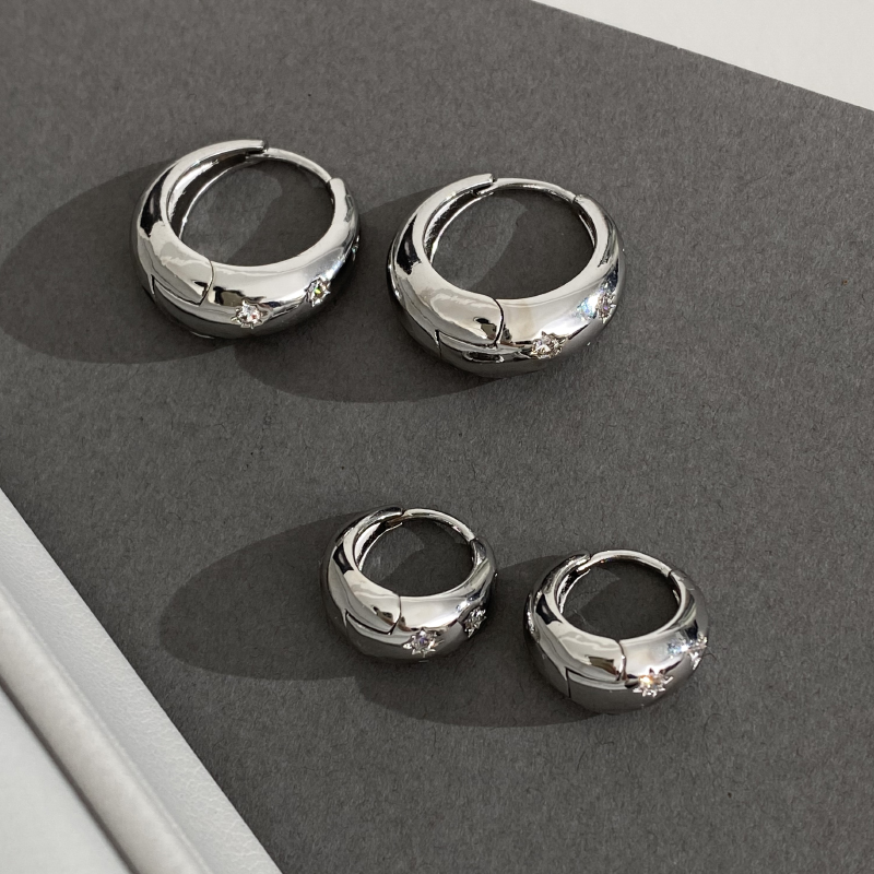 DOUDOUSTORE 极简光面镶钻四芒星素圈耳圈女简约几何百搭简洁耳环