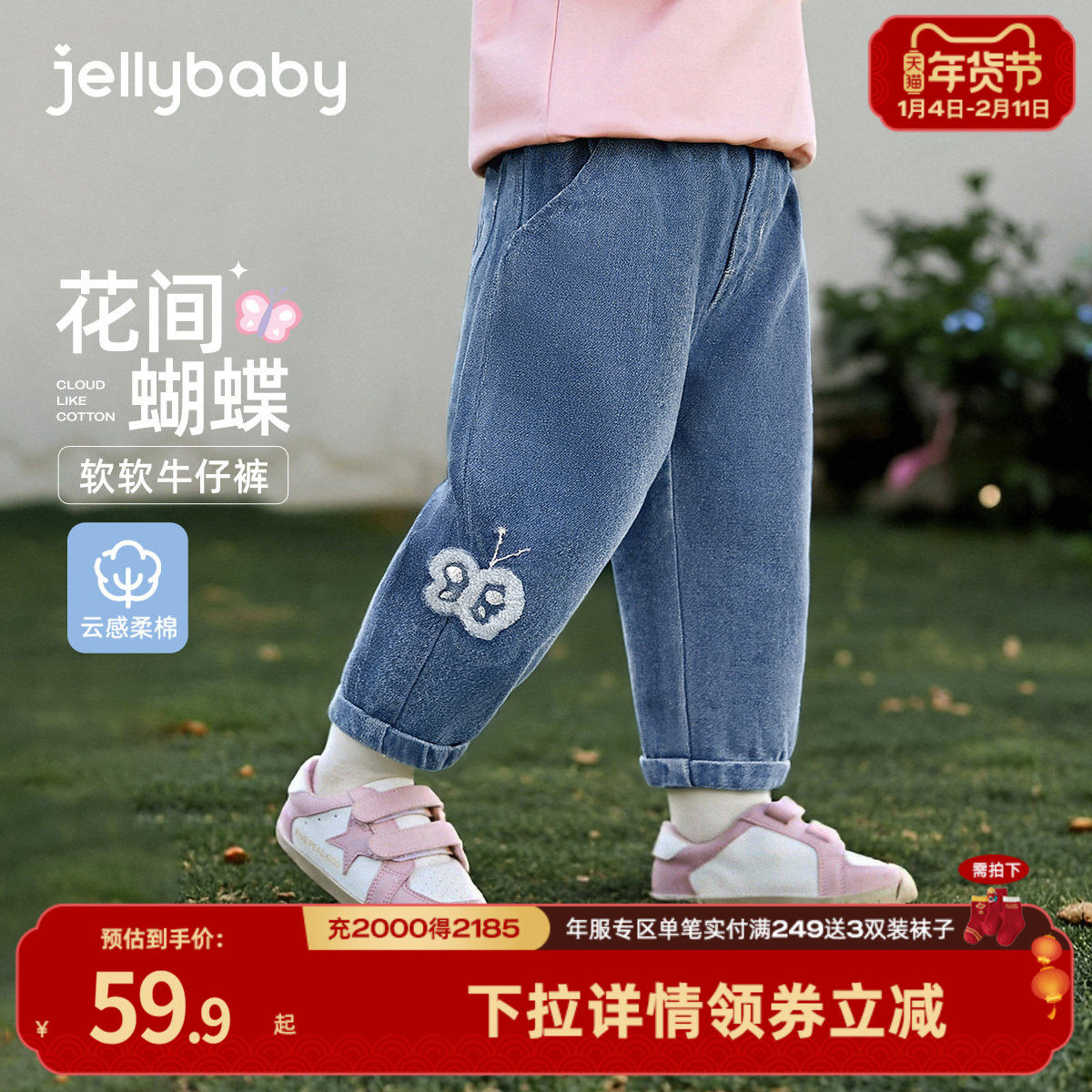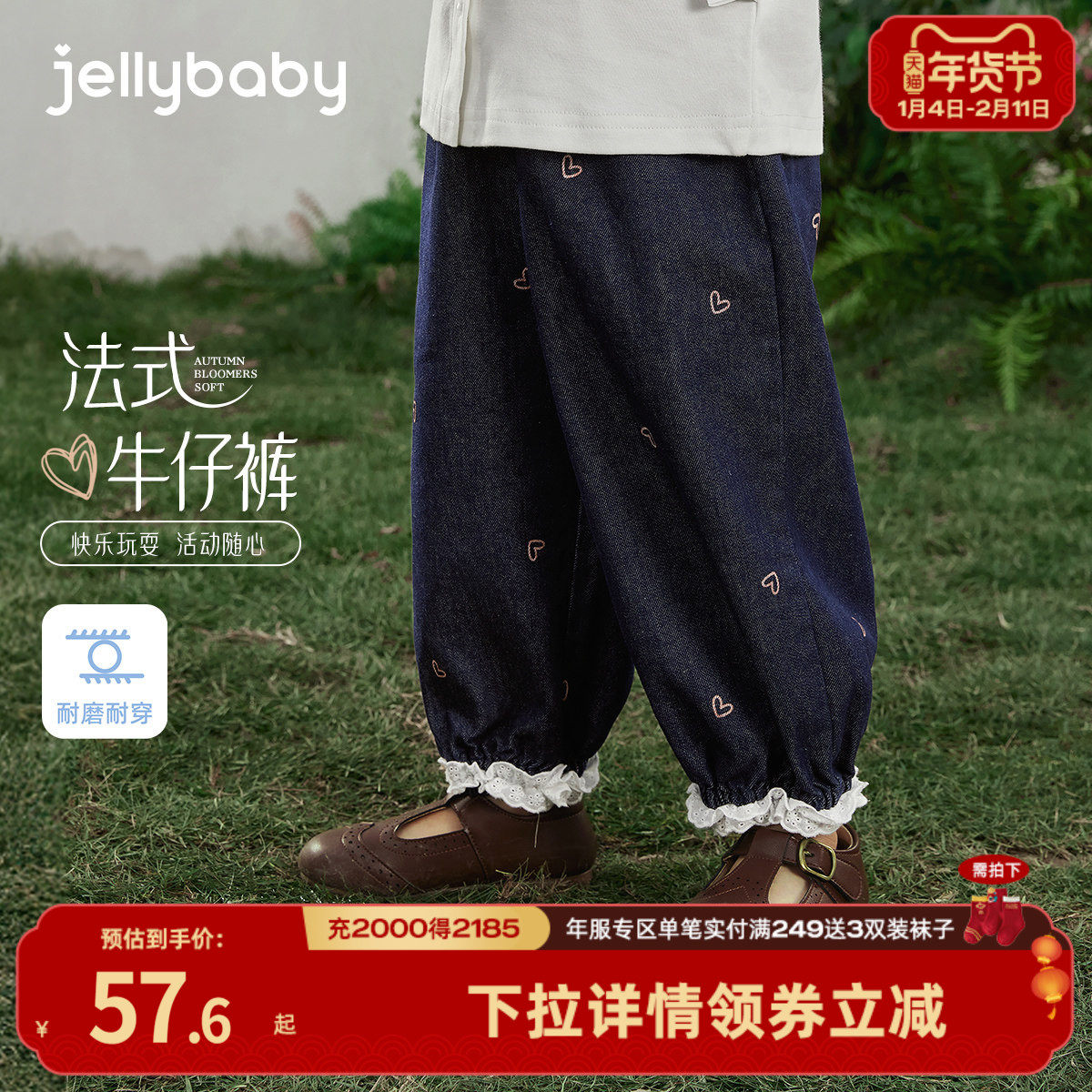 巴拉巴拉童装女童加绒裤子儿童2026新款春秋装牛仔裤直筒拜年服潮