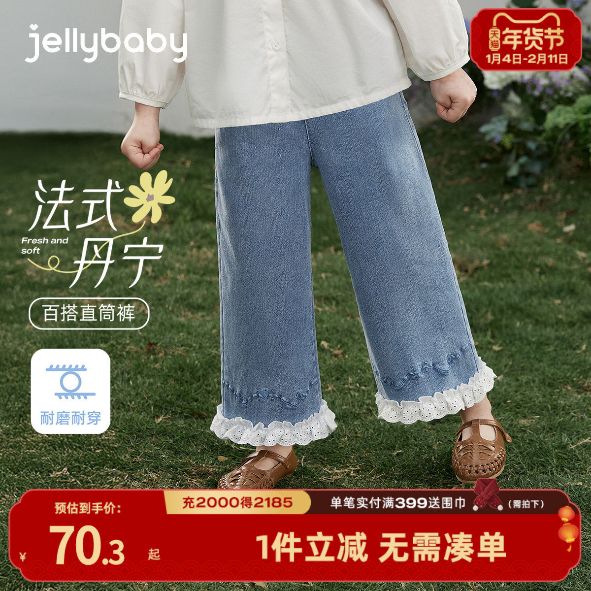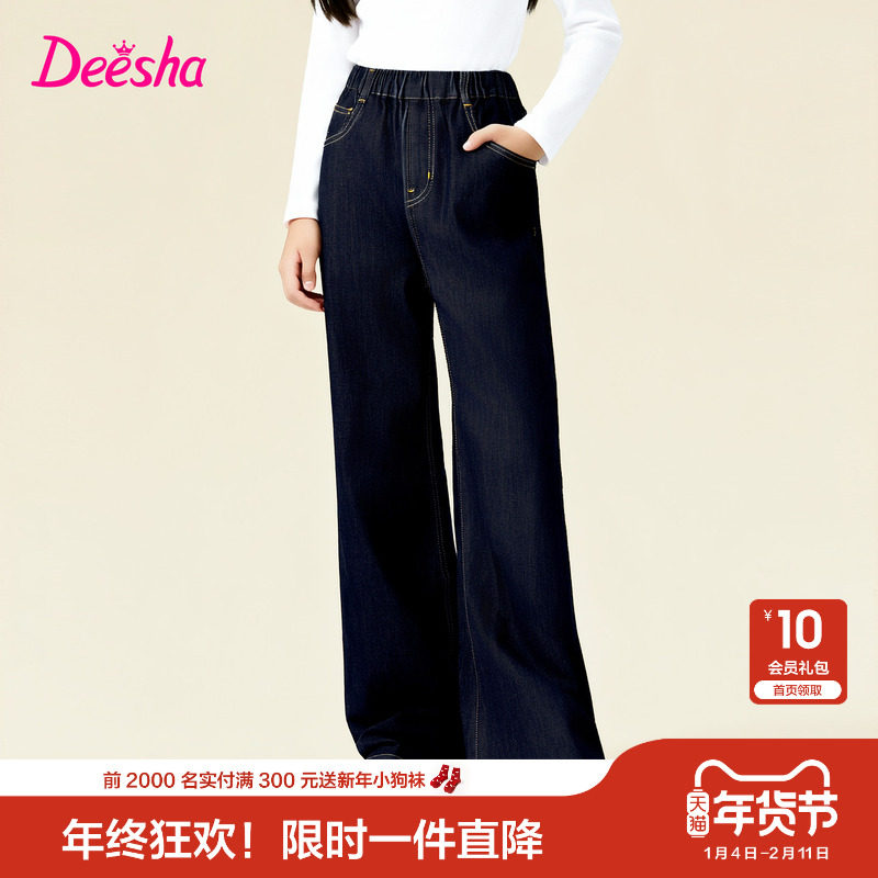 【云感棉柔】笛莎官方旗舰童装女童牛仔裤春季新款女孩儿童直筒裤