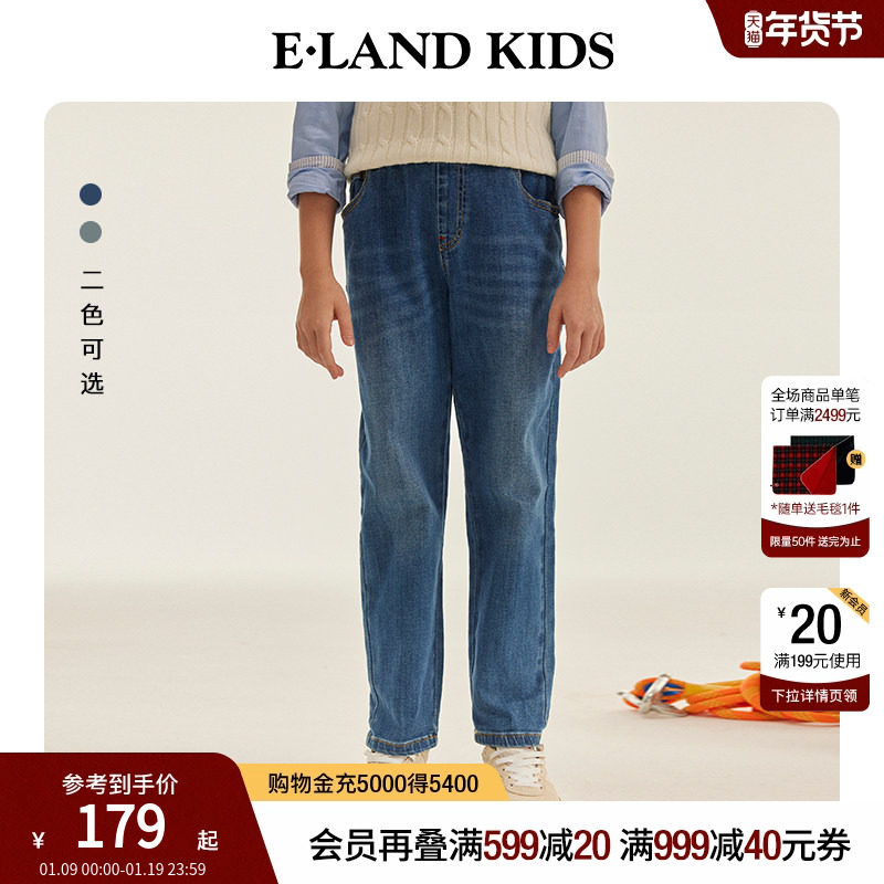 eland kids衣恋童装男童女童牛仔裤春秋季学院风徽章刺绣休闲裤子