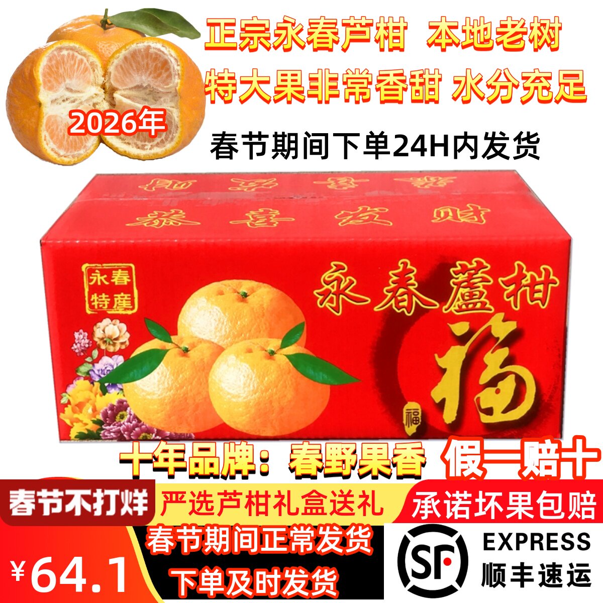 福建新鲜水果正宗永春芦柑80mm特大果椪柑沙糖桔10斤礼盒顺丰包邮