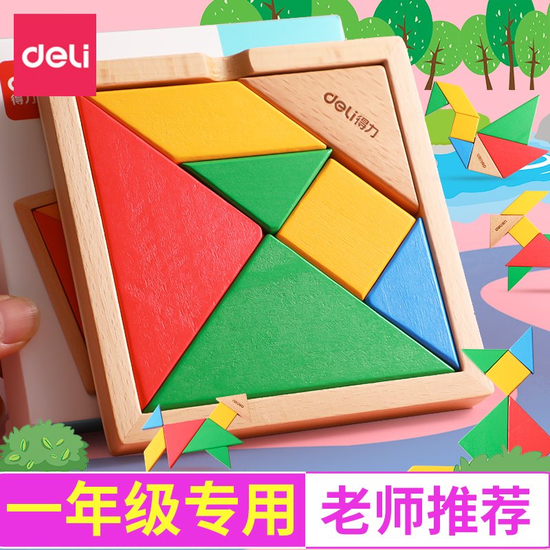 得力磁力七巧板智力拼图木质儿童幼儿园一年级小学生教具益智玩具