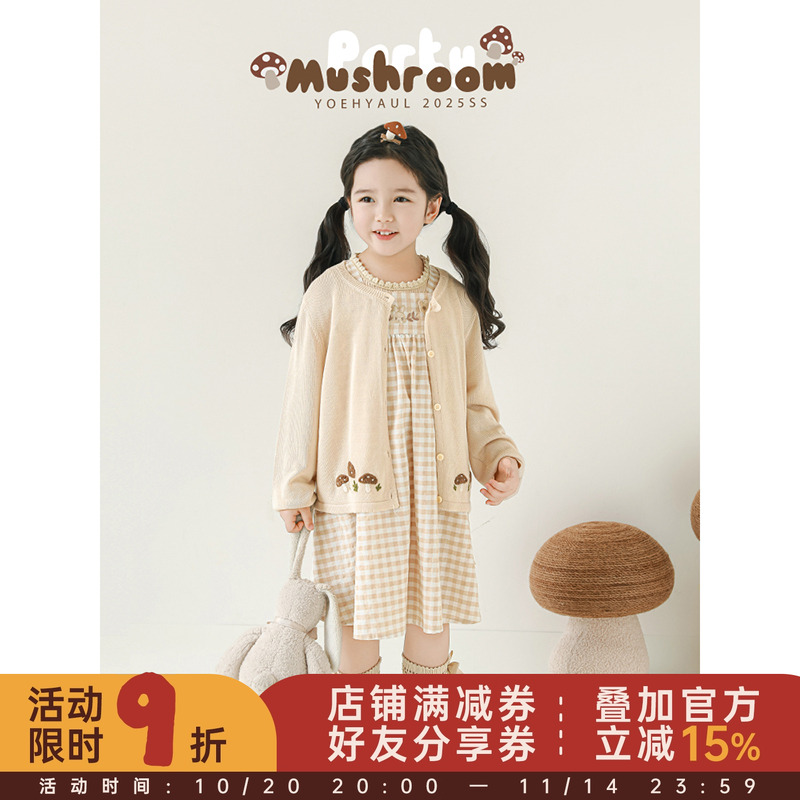 幼悠女童夏季套装夏季甜美可爱小兔绣花背带裙蘑菇绣花毛衣开衫潮