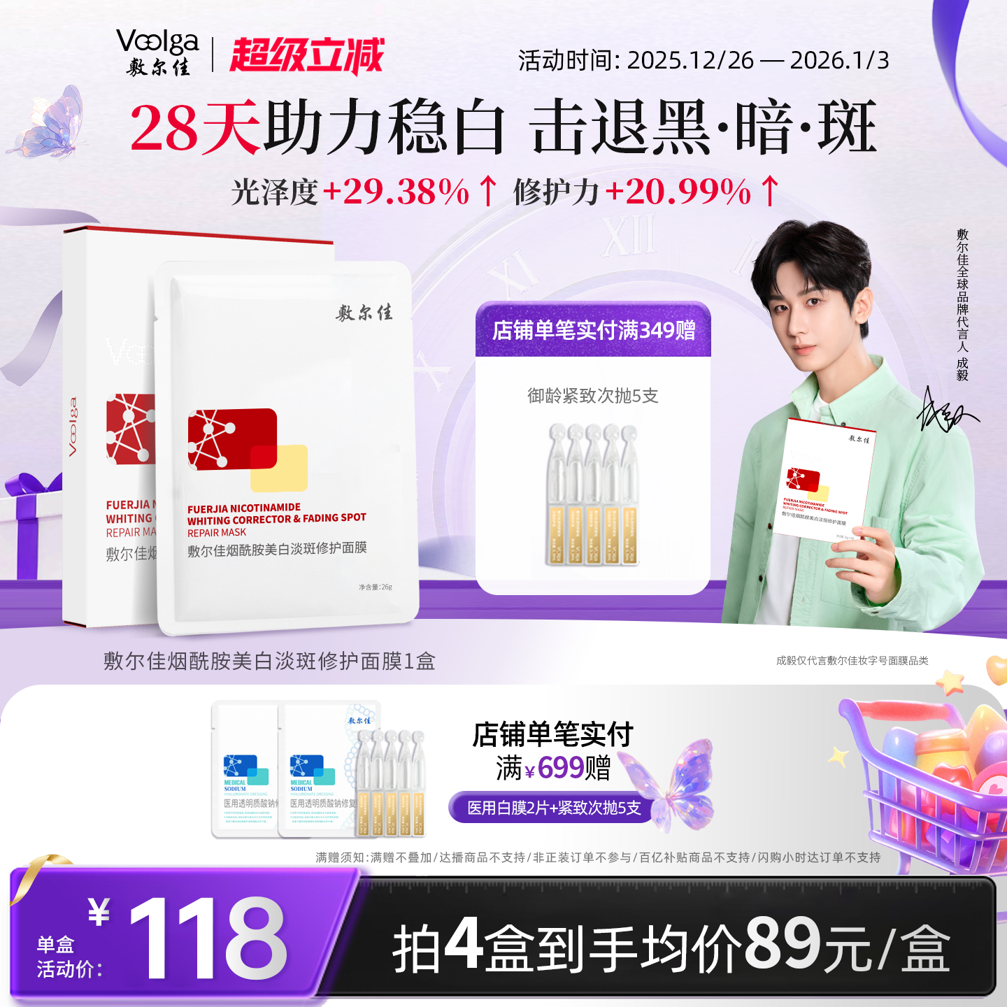 敷尔佳烟酰胺美白淡斑面膜补水美白褪黄暗沉提亮肤色温和保湿1盒