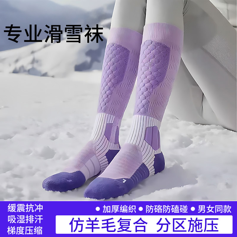 佑美专业滑雪袜女保暖冬季儿童加厚单双板压力登山长筒运动男袜子