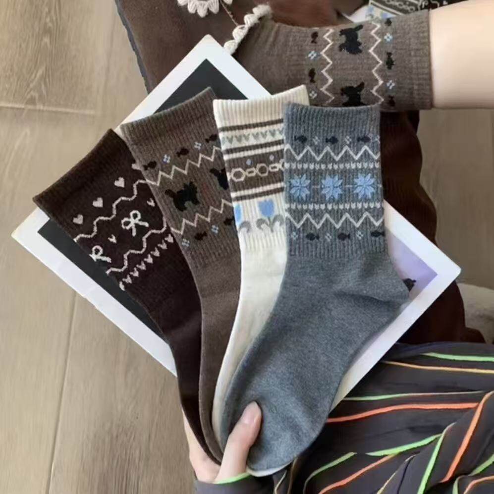 - 袜子女 中筒袜 复古