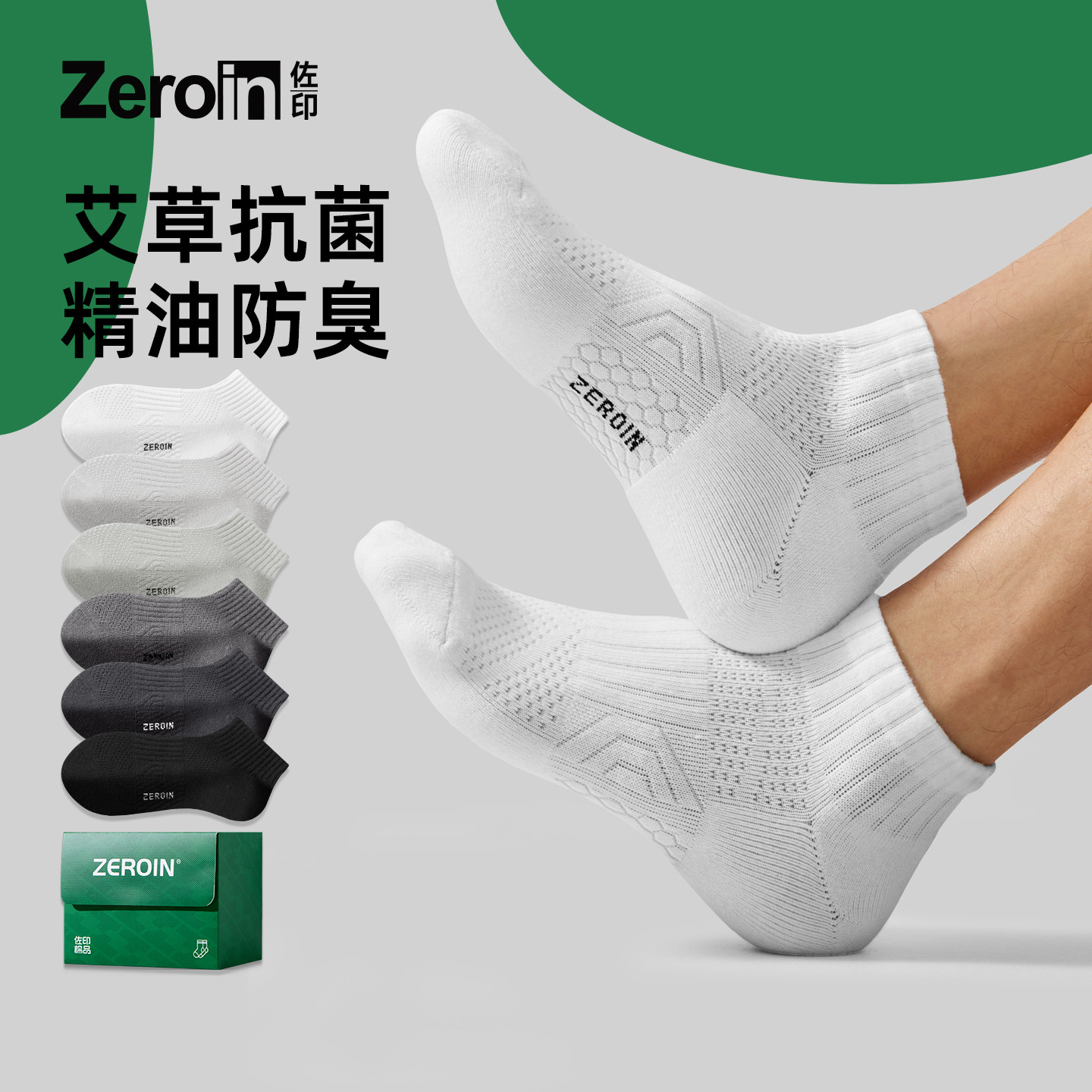 佐印艾草袜子男士防臭7a抗菌夏薄款男款纯棉纱线运动透气白色短袜
