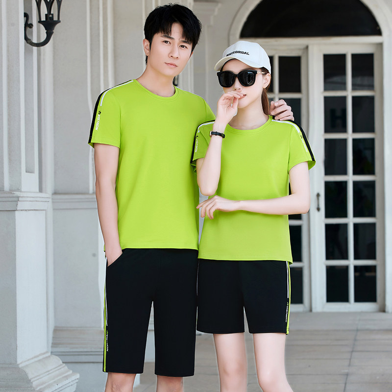 情侣运动套装男夏季休闲两件套圆领短袖短裤夏装薄款晨跑运动服女