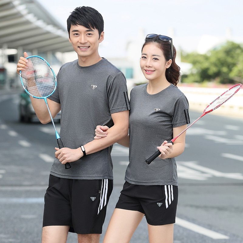 情侣装夏装休闲运动套装男女同款短袖短裤羽毛球服跑步健身两件套
