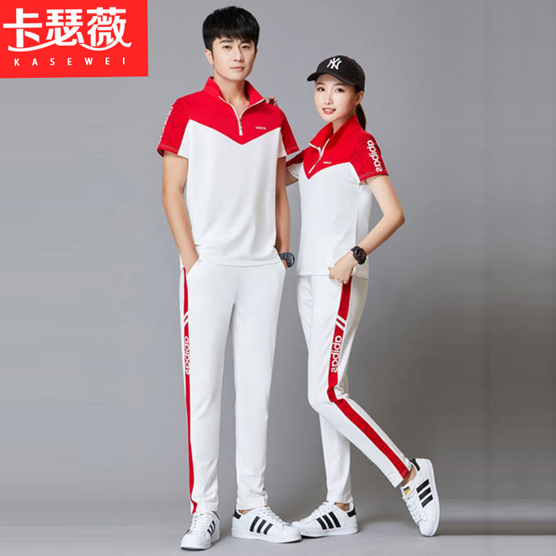 情侣运动套装夏季T恤男女跑步运动服夏装长裤短裤两件套校服团体