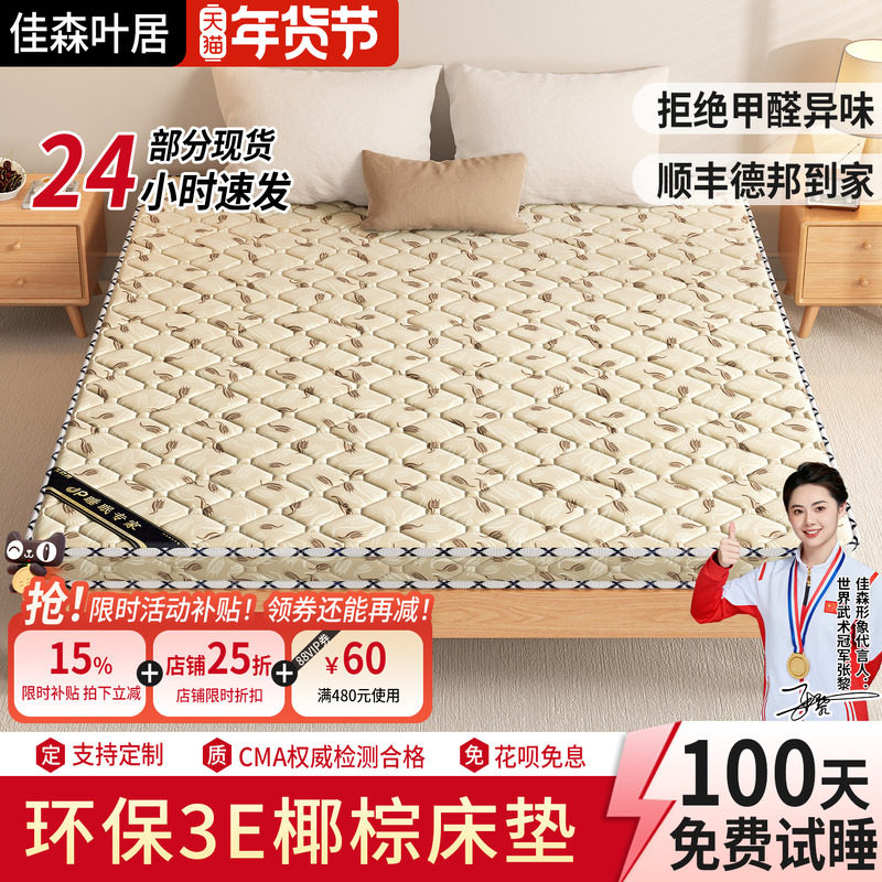 天然椰棕床垫1.8m1.5米3E软硬棕榈1.2米租房家用儿童宿舍乳胶折叠