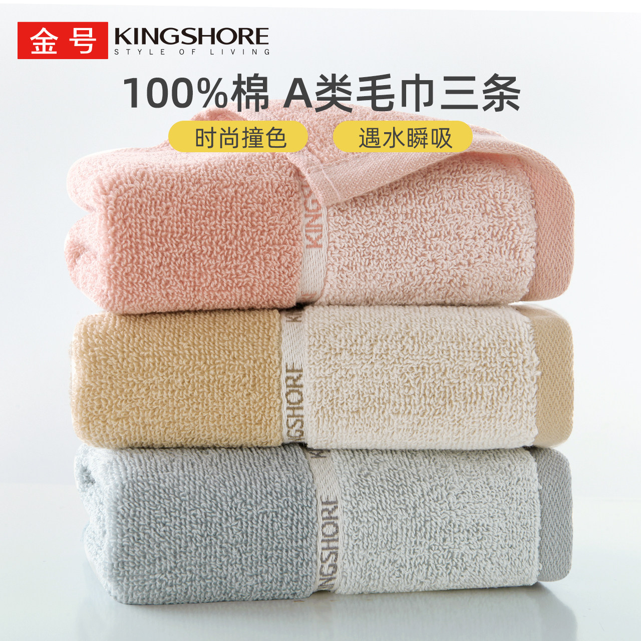 3条金号毛巾纯棉洗脸面巾家用全棉成人男女儿童吸水洗澡擦头发A类