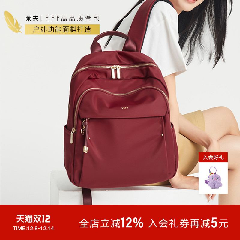 莱夫红色大容量双肩包女旅游轻便背包2025新款上班通勤电脑包书包