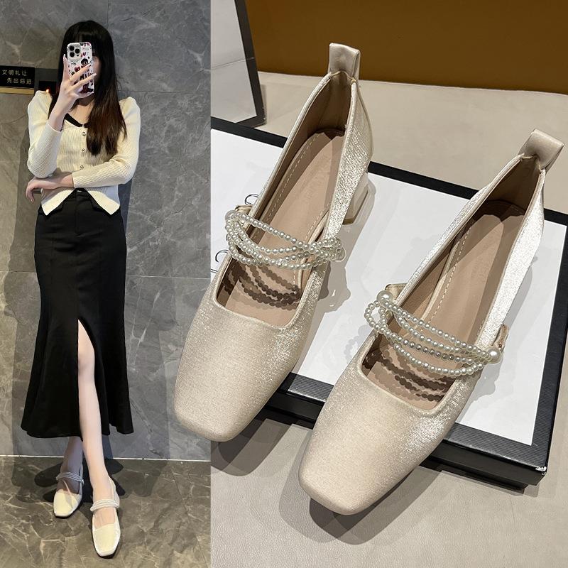 法式晚风气质通勤单鞋女2023新款秋韩版仙女风粗跟玛丽珍鞋配裙子