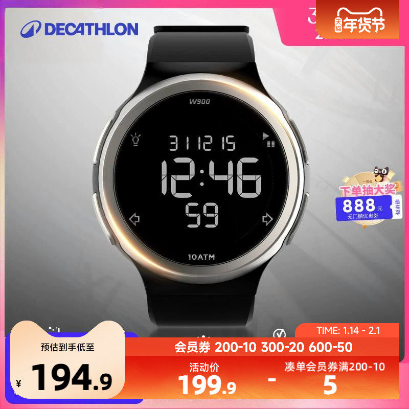 迪卡侬运动手表男W900数字电子表女多功能跑步游泳防水智能MSTF