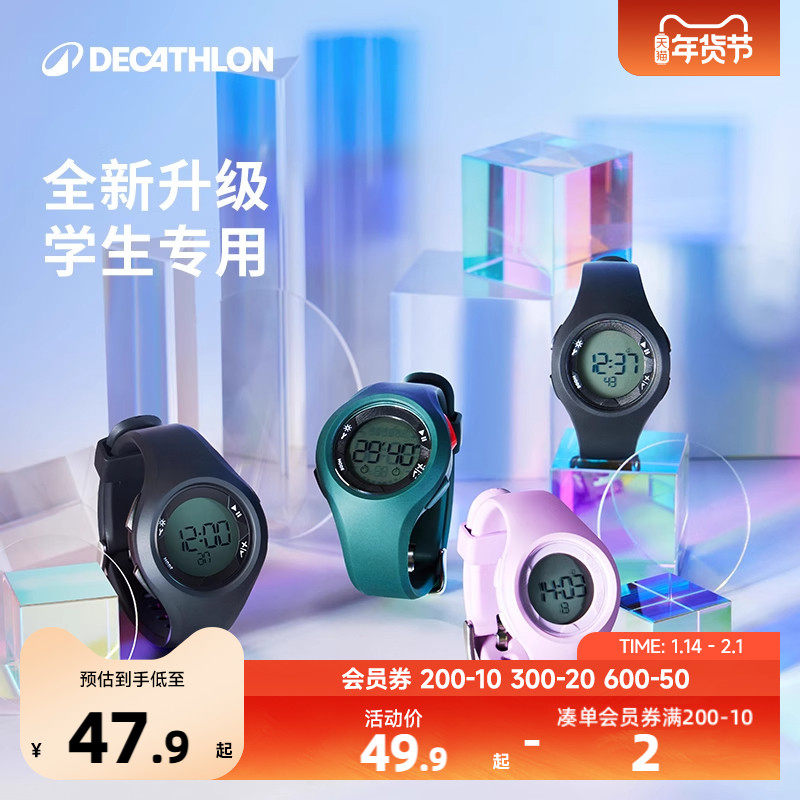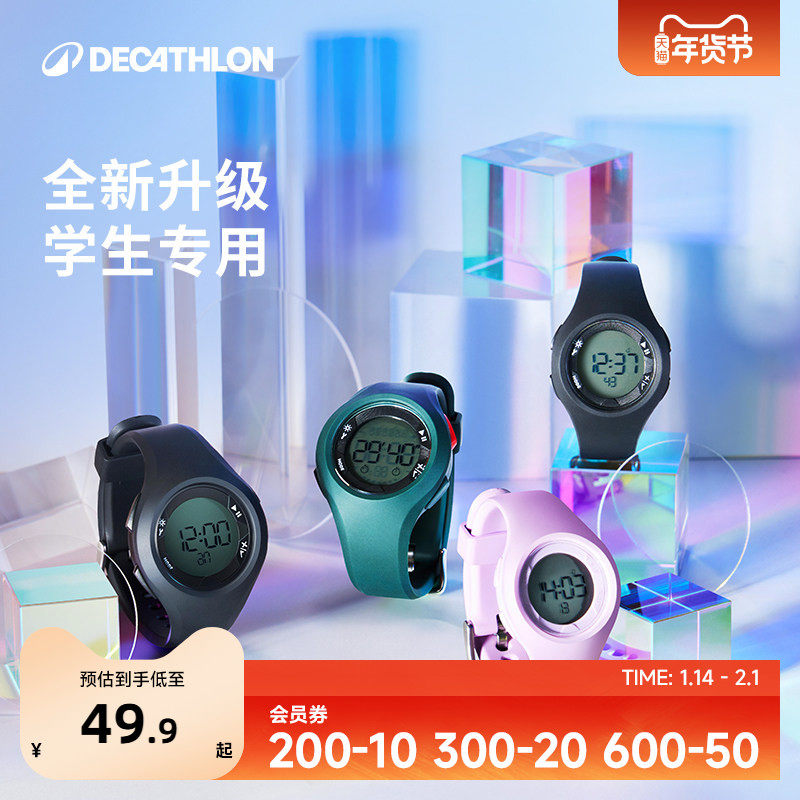 迪卡侬电子表男中学生防水W500运动手表女儿童闹钟青少年潮流KIDA
