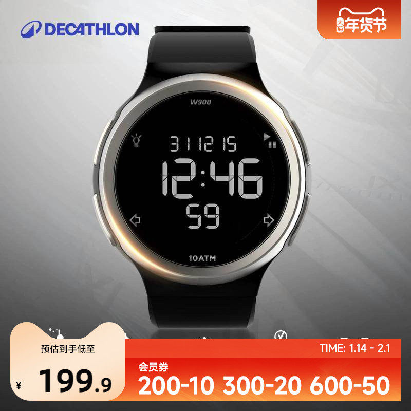 迪卡侬运动手表男W900数字电子表女多功能跑步游泳防水智能END5