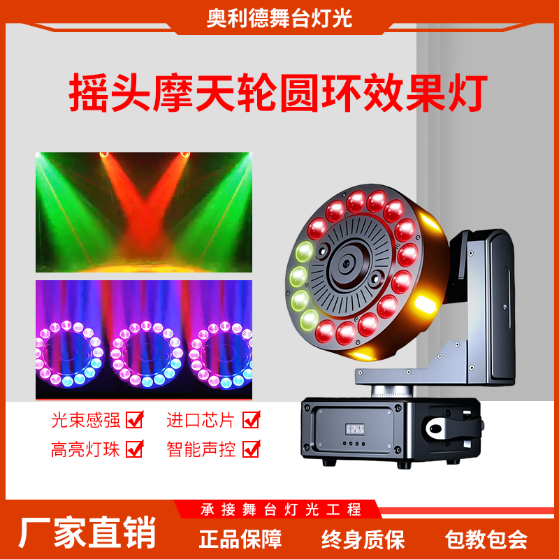 舞台灯光摇头摩天轮圆环效果灯无极旋转频闪灯KTV酒吧蹦迪氛围灯