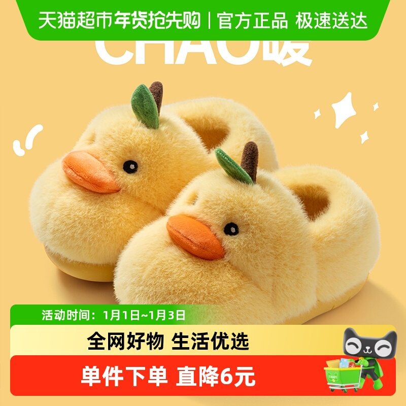 巴拉巴拉儿童棉拖鞋男童秋冬款宝宝室内家居女童保暖小孩毛毛棉拖