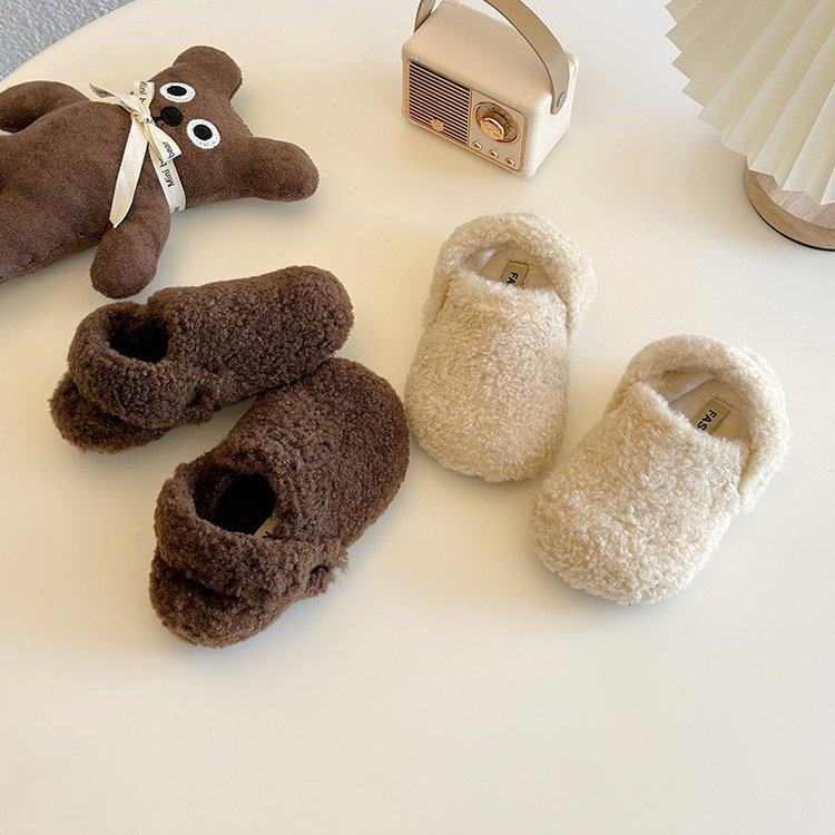 儿童毛毛鞋秋冬新品男童软木棉拖鞋外穿女童绒面保暖鞋亲子休闲鞋