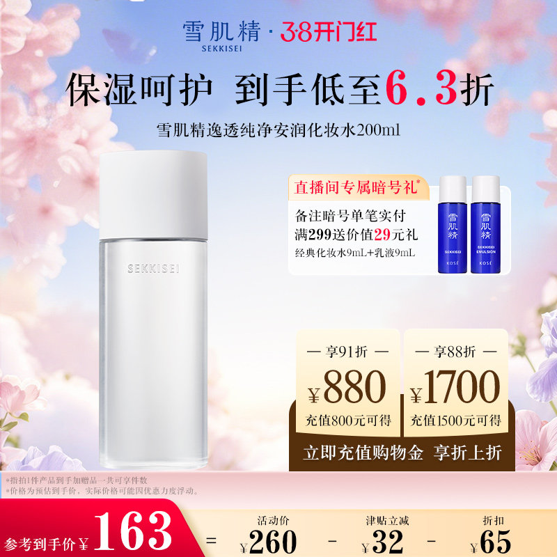 雪肌精逸透纯净化妆水200ml 白色款温和无添加 零酒精2026-06